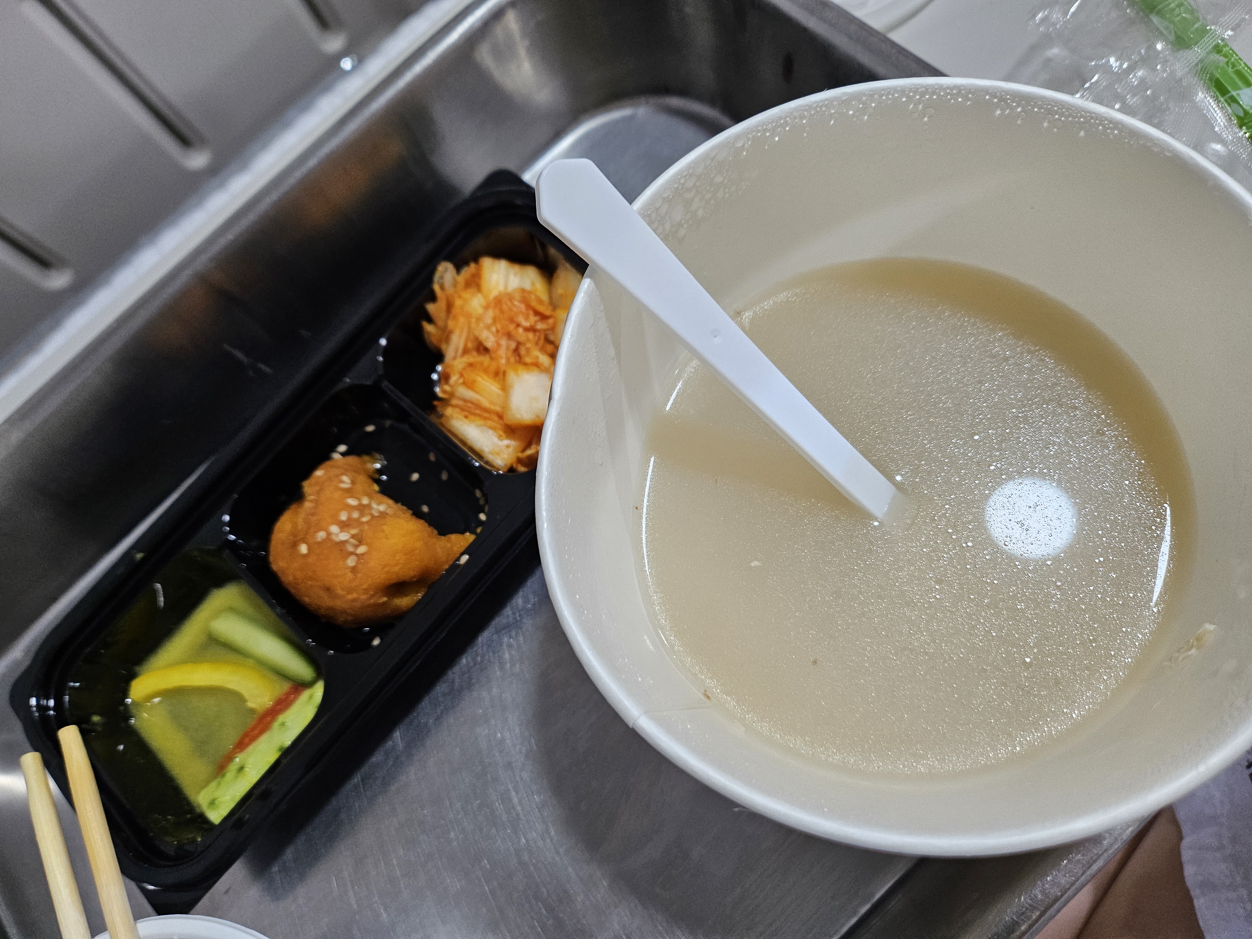 후기를 읽다 보니 음식물 냄새가 너무 역하다는 말이 많아서 저는 일회용 수세미랑 주방세제를 챙겨 와서 다 먹은 후에는 플라스틱을 한번 씻어서 냄새나지 않는 상태로 보관해 두었어요. 과연 효과가 있을지는 내일이 되어봐야 알 수 있겠죠?